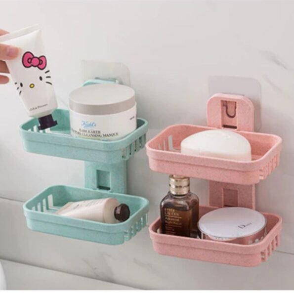 - Suporte Saboneteira Dupla de Parede – Fixação Adesiva Sem Furo – 2 Andares para Banheiro