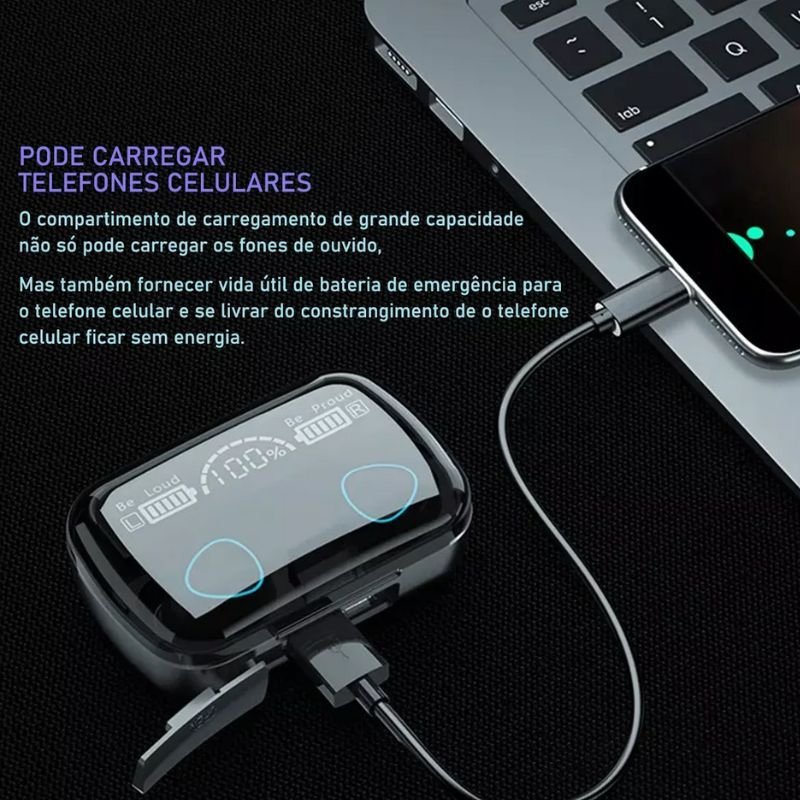 O Fone M10 Bluetooth Sem Fio oferece tecnologia avançada para proporcionar uma experiência sonora imersiva e de alta qualidade. Com design ergonômico, ele se ajusta perfeitamente aos ouvidos, garantindo conforto mesmo após horas de uso. Seu display digital LED permite acompanhar o nível da bateria em tempo real, e os controles touch facilitam a navegação entre músicas, chamadas e assistentes de voz.