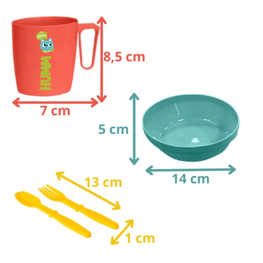 Kit Refeição Bebê 4 Peças Colorido – Tigela, Caneca e Talheres Seguros – Homeplay Mundo Mágico