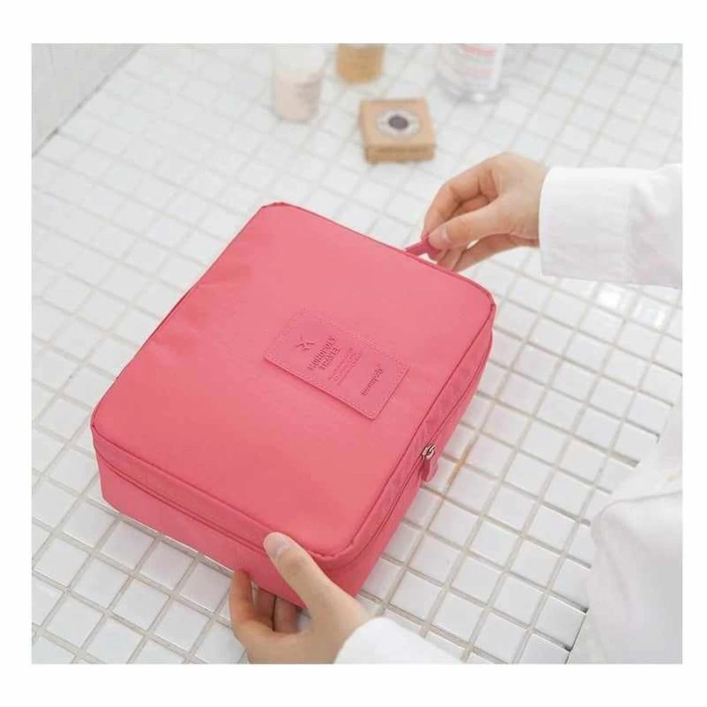Bolsa de maquiagem compacta, ótima para usar em viagens.