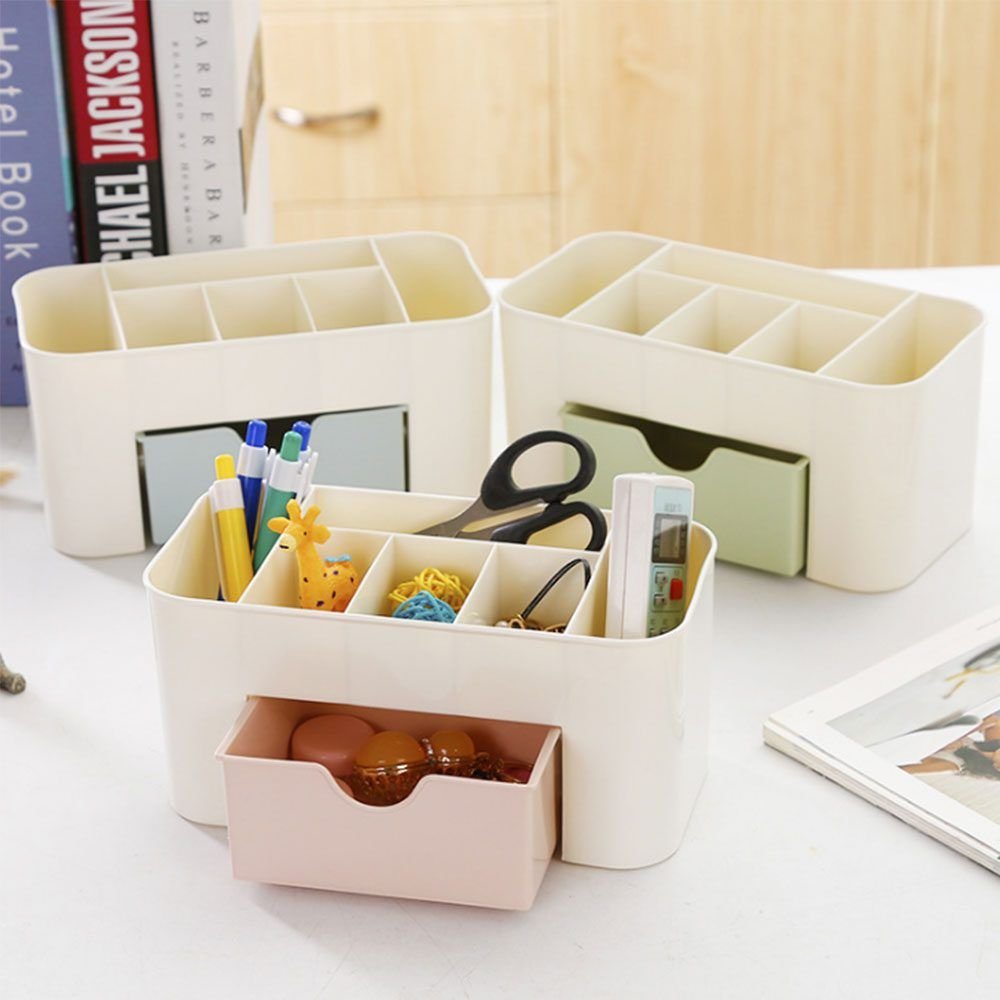 Mantenha seus itens essenciais sempre organizados e acessíveis com este organizador multifuncional. Ideal para quem busca praticidade e elegância, ele conta com gaveta deslizante e compartimentos variados, perfeitos para armazenar maquiagem, pincéis, acessórios, bijuterias, cosméticos e até itens de escritório.