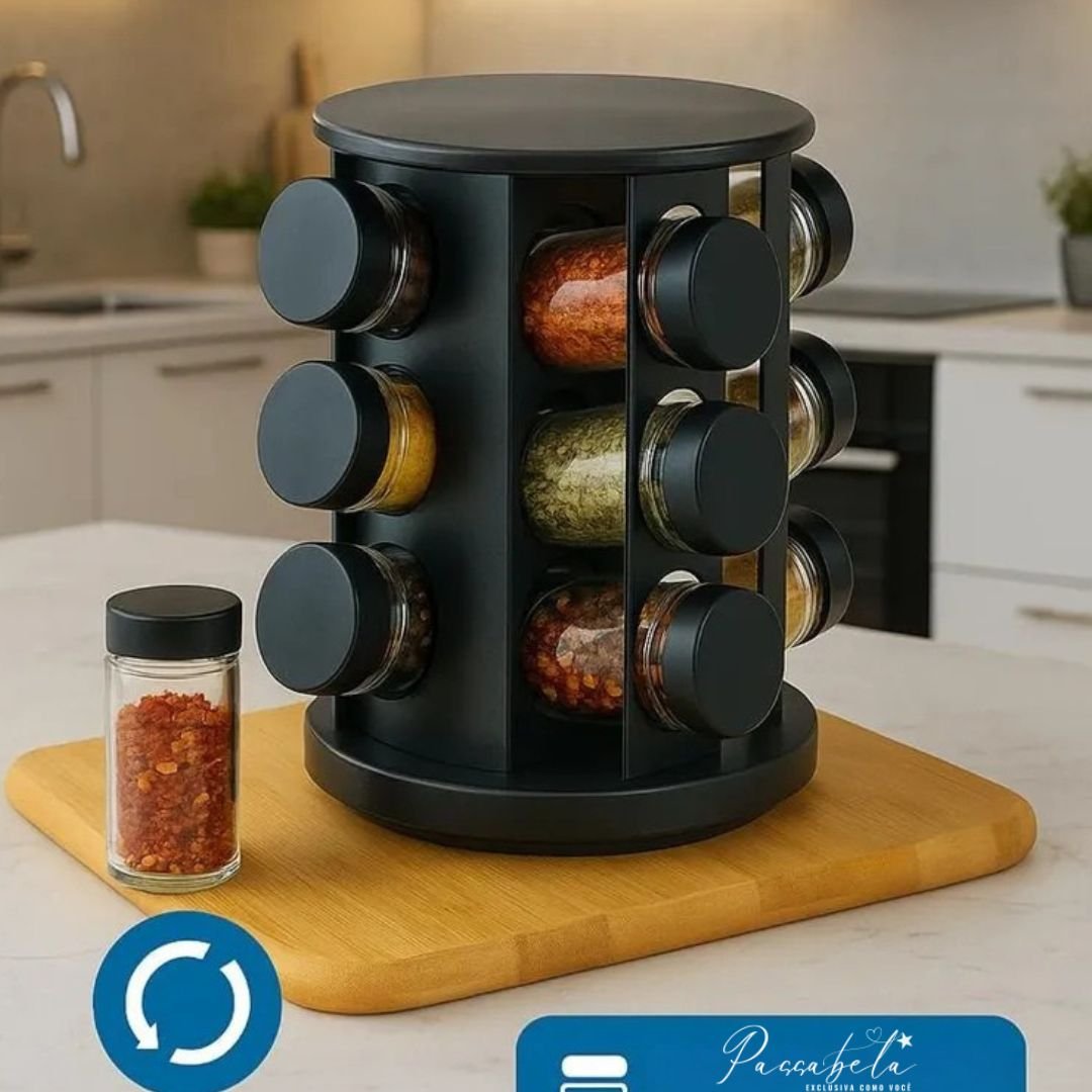 Transforme a organização dos seus temperos com este porta condimentos giratório 360 graus, ideal para manter tudo à mão e otimizar o espaço da sua bancada ou armário. Com design moderno, funcionalidade e versatilidade, é a escolha perfeita para quem busca praticidade na cozinha.
