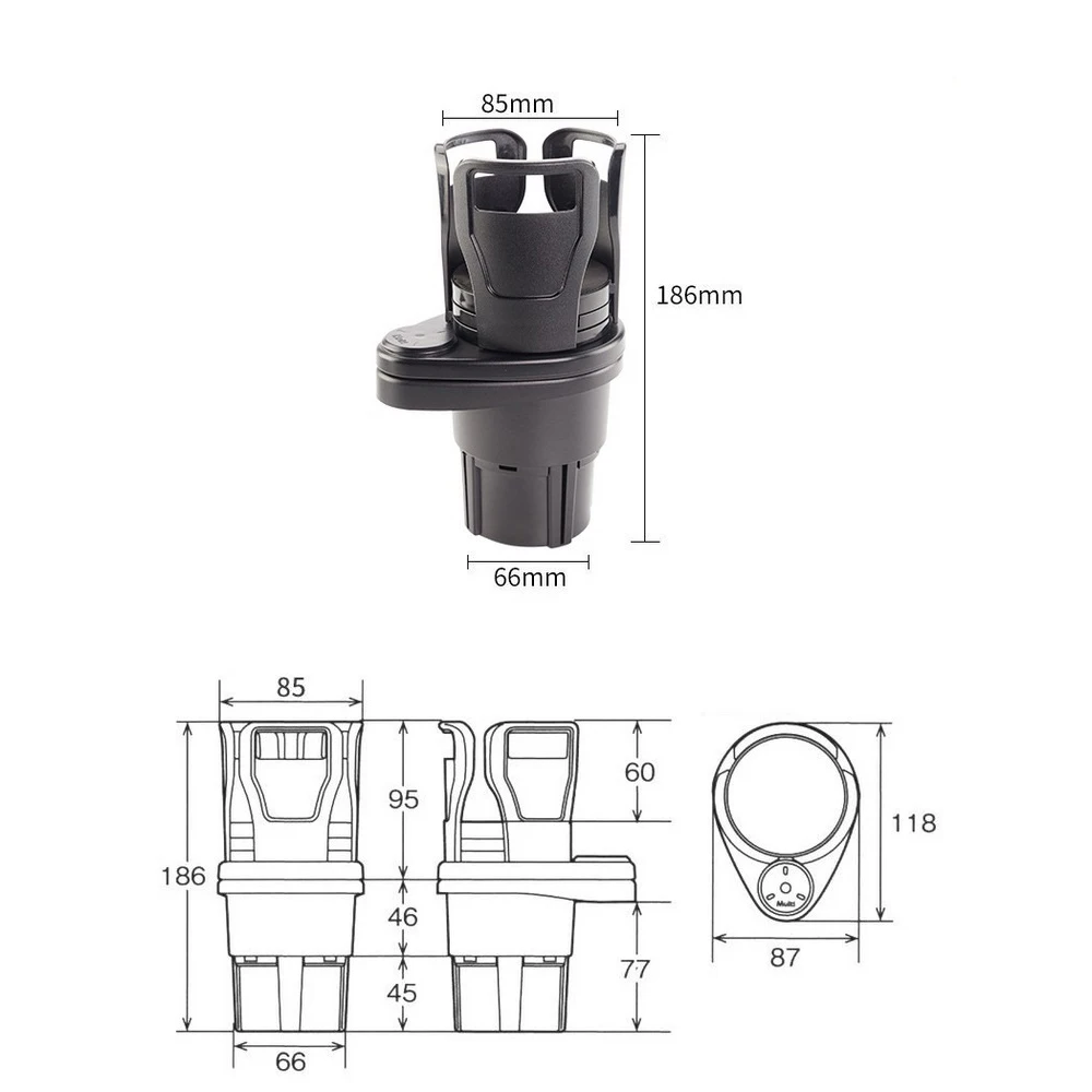 -A base do suporte superior do copo pode girar livremente 360 graus. Um porta-copos do carro pode ser substituído por dois.
