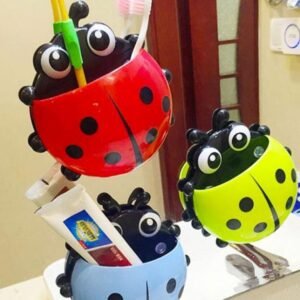 **Porta Escova e Pasta de Dente Joaninha com Ventosa – Organização e Estilo para Seu Banheiro**