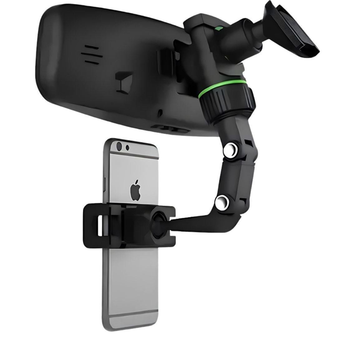 Este acessório foi projetado para transformar a maneira como você interage com seus dispositivos no carro. Ele amplia a visão do retrovisor e oferece uma posição estável e prática para seu smartphone ou GPS, sem atrapalhar a direção.
